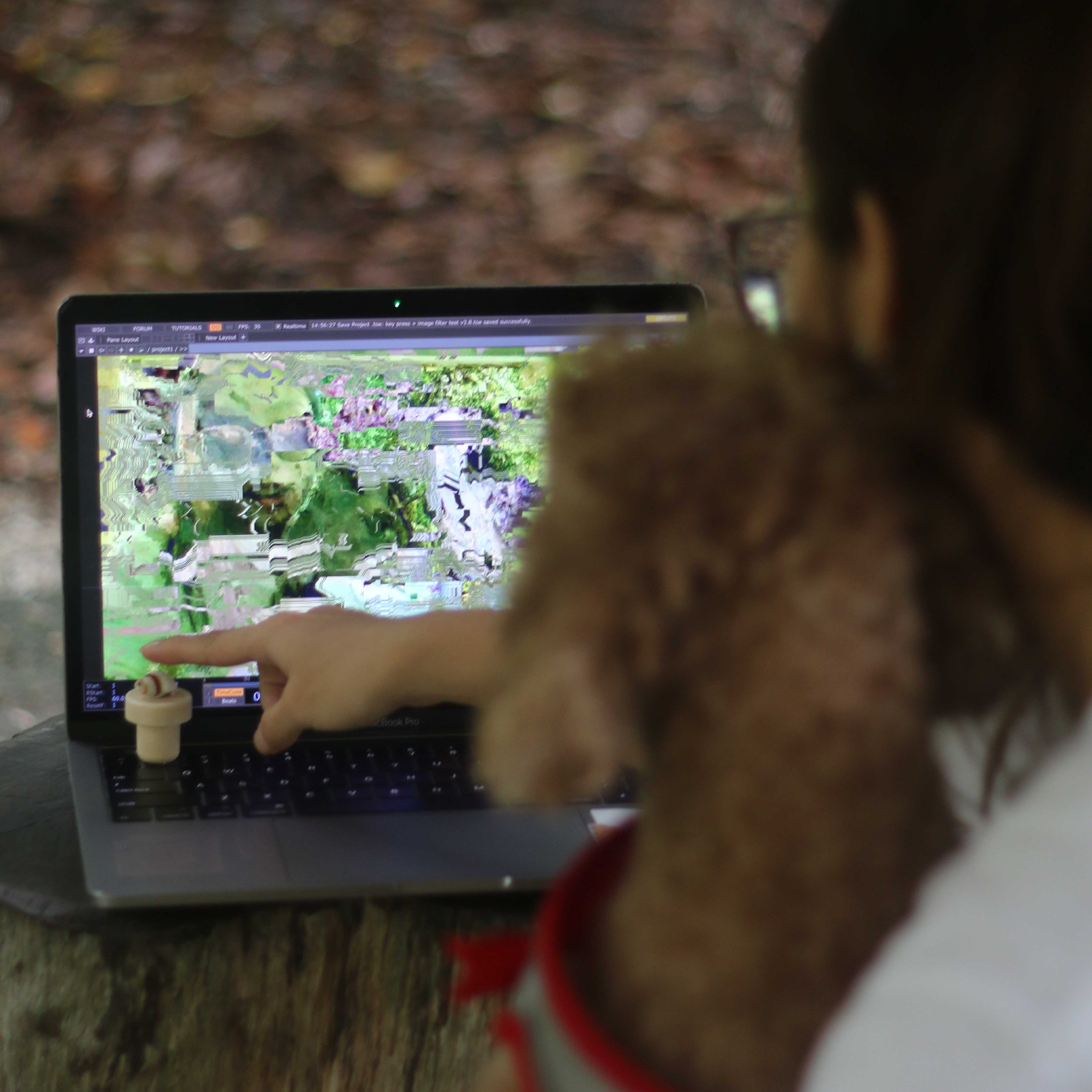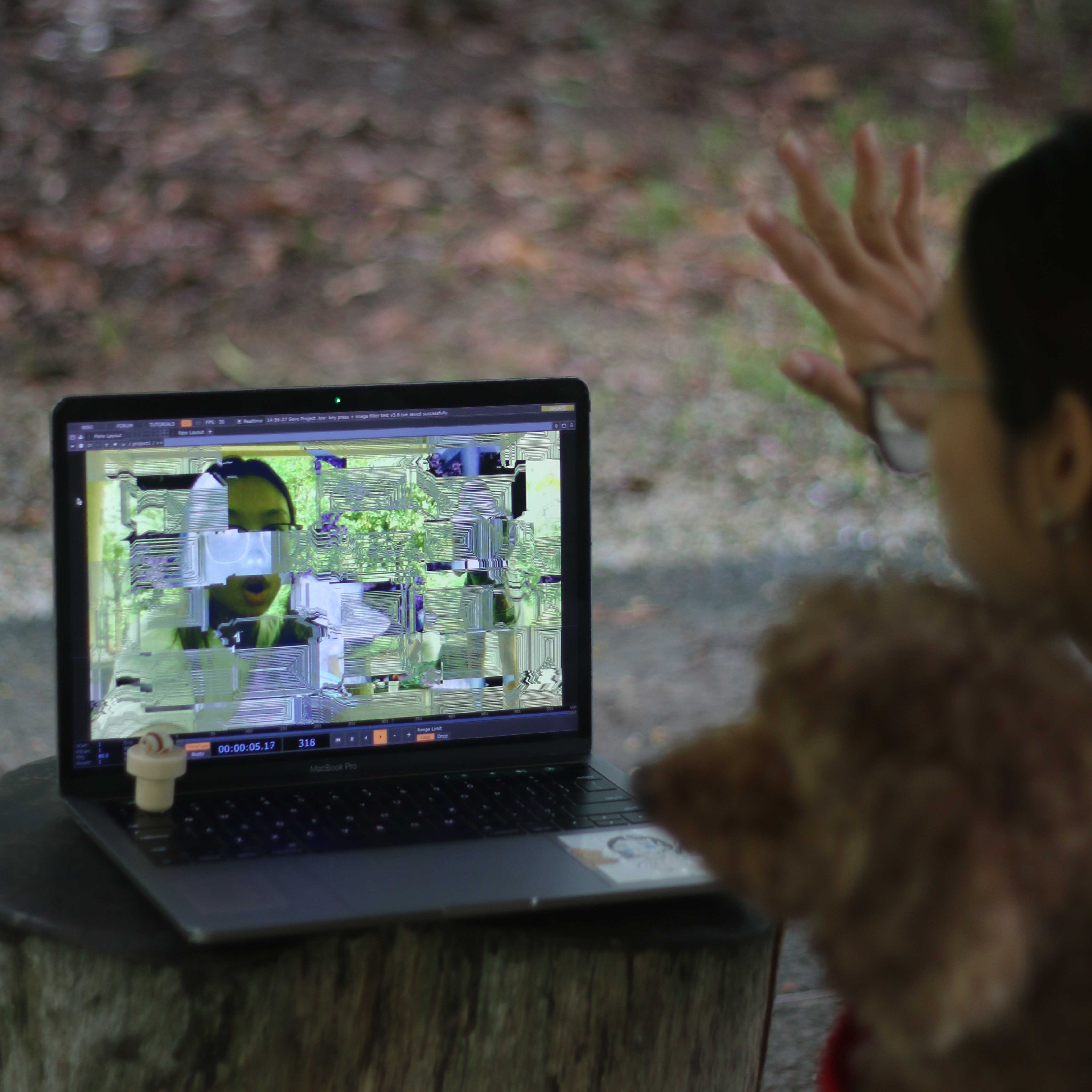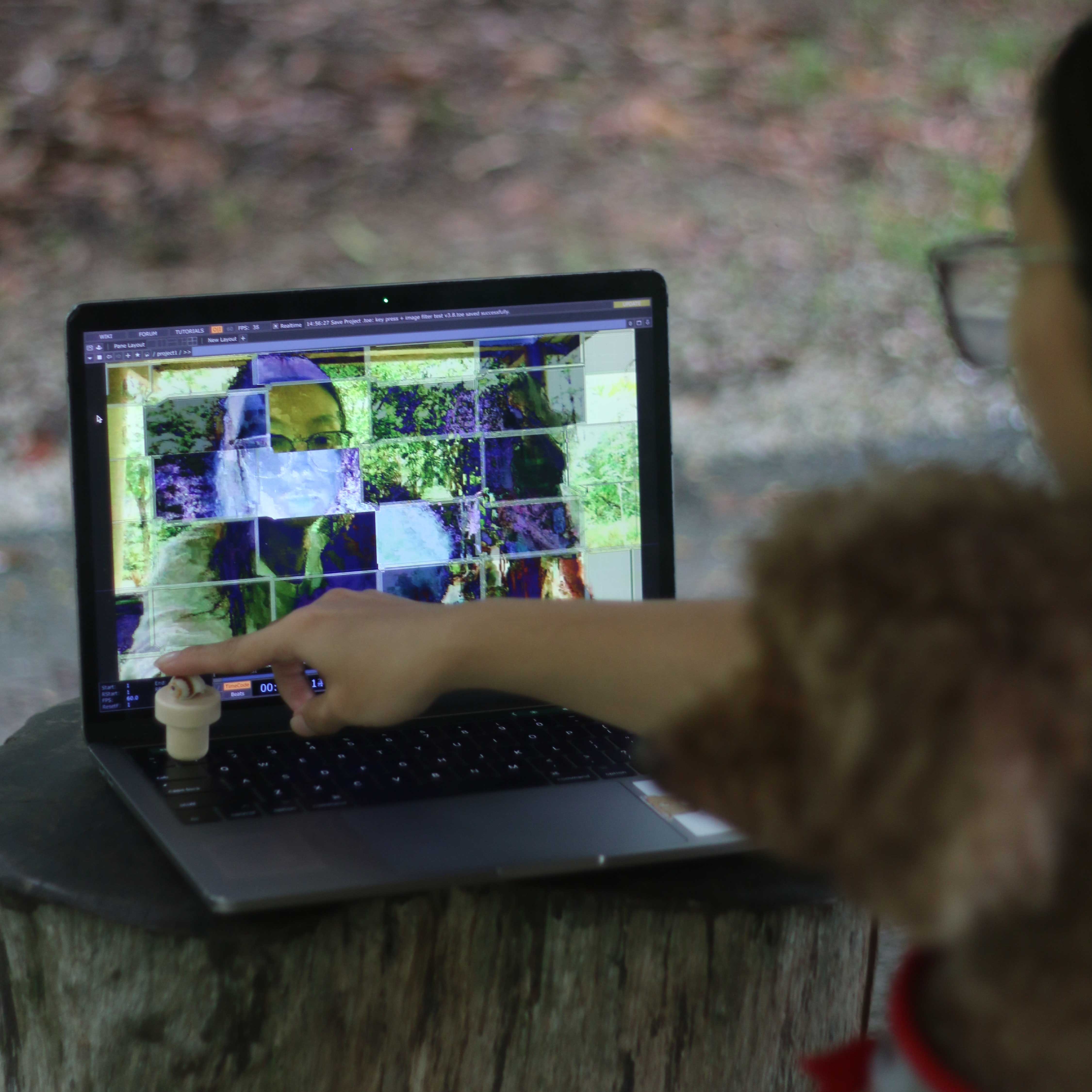 In this experiental prototype, the setup components that contribute to Tangible User Interface (TUI) design are the interactive live visuals (left), currently on a computer just for testing and the live input (right), key-press that is designed to make the button more prominent).